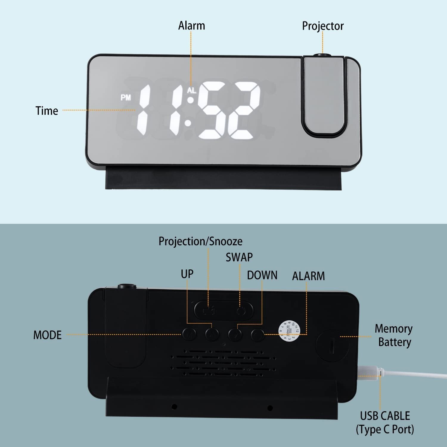 Package Included: 1*Mirror projection alarm clock
